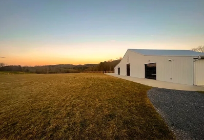 Our new, modern barn venue is a 4,796 square foot structure that boasts a soft white interior, floor to ceiling stone fireplace, bistro-lit patio, fire pit, catering kitchen for optimal convenience, inside/outside bar area, bridal suite, groom’s quarters, tables and chairs.